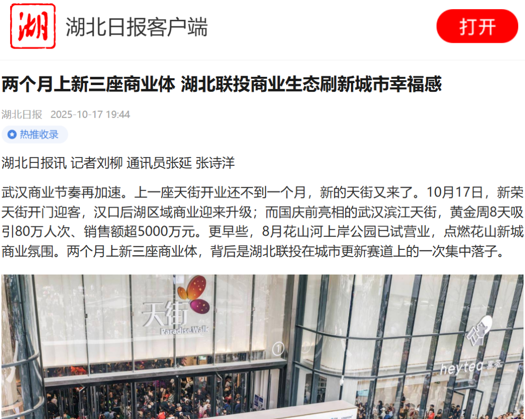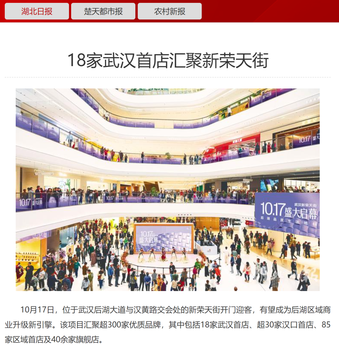 湖北日报:两个月上新三座商业体 湖北918博天堂商业生态刷新城市幸福感